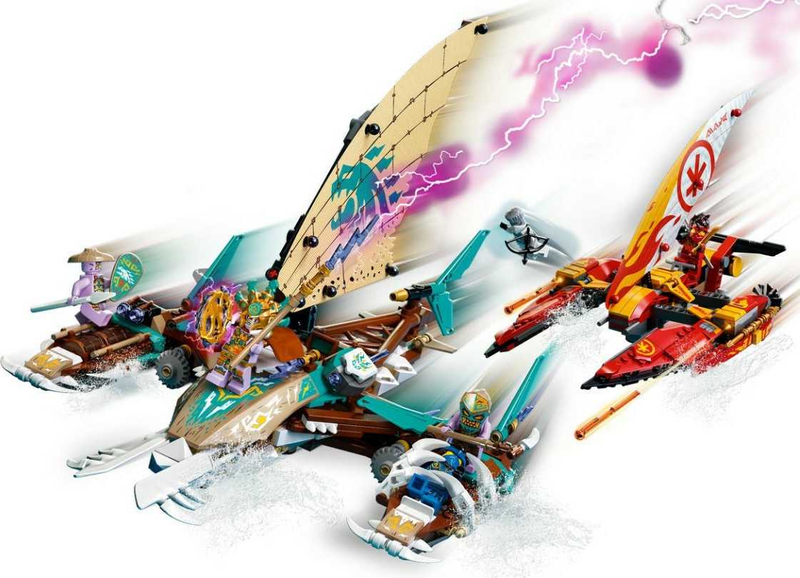 Γίνε ο καπετάνιος του φοβερού καταμαράν των νίντζα σε μια εκπληκτική ναυμαχία εναντίον των Φυλάκων! Μπες σε λειτουργία επίθεσης και πυροδότησε τους εκτοξευτές με ελατήρια. Γουάου! Το πανίσχυρο μαχητικό καταμαράν των Φυλάκων, που χωρίζεται σε 3 ξεχωριστά σκάφη, το ένα με φυλακή, προσπαθεί να σε βυθίσει με τις αιχμηρές λεπίδες και τους θανάσιμους εκτοξευτές του. Πρέπει να θριαμβεύσεις σε αυτή τη ναυμαχία και να πάρεις το πολύτιμο φυλαχτό της καταιγίδας.